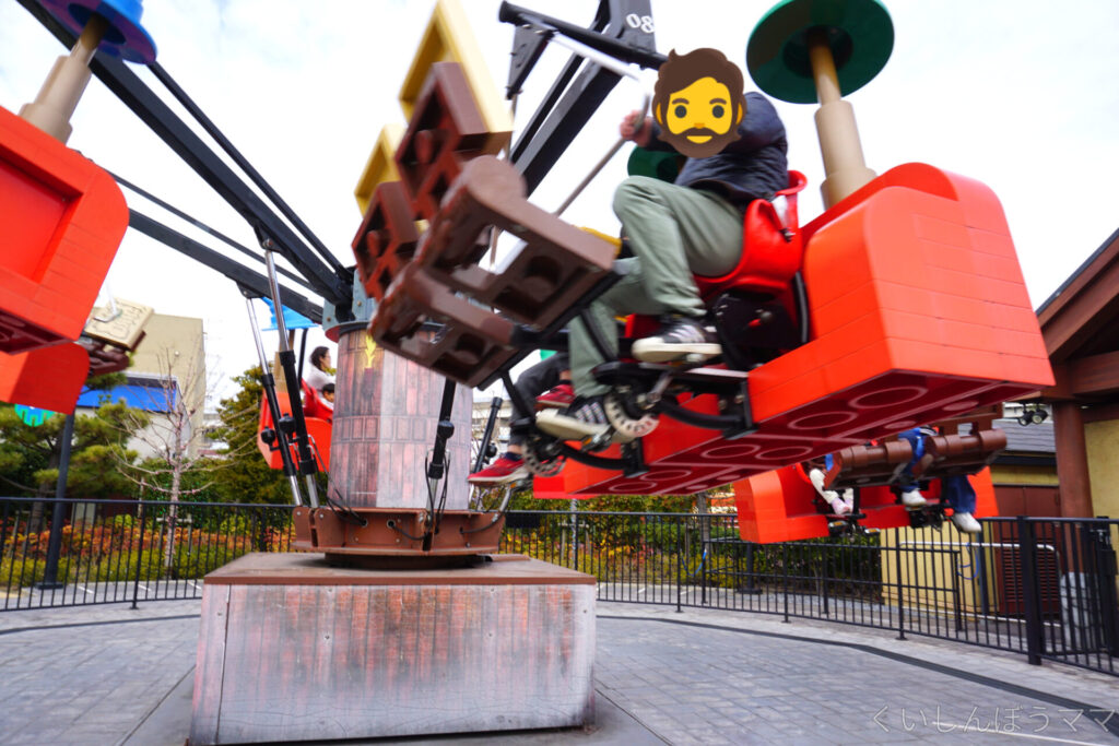 ぐるぐる周りながら、足元のペダルを漕ぐと上昇するアトラクション。