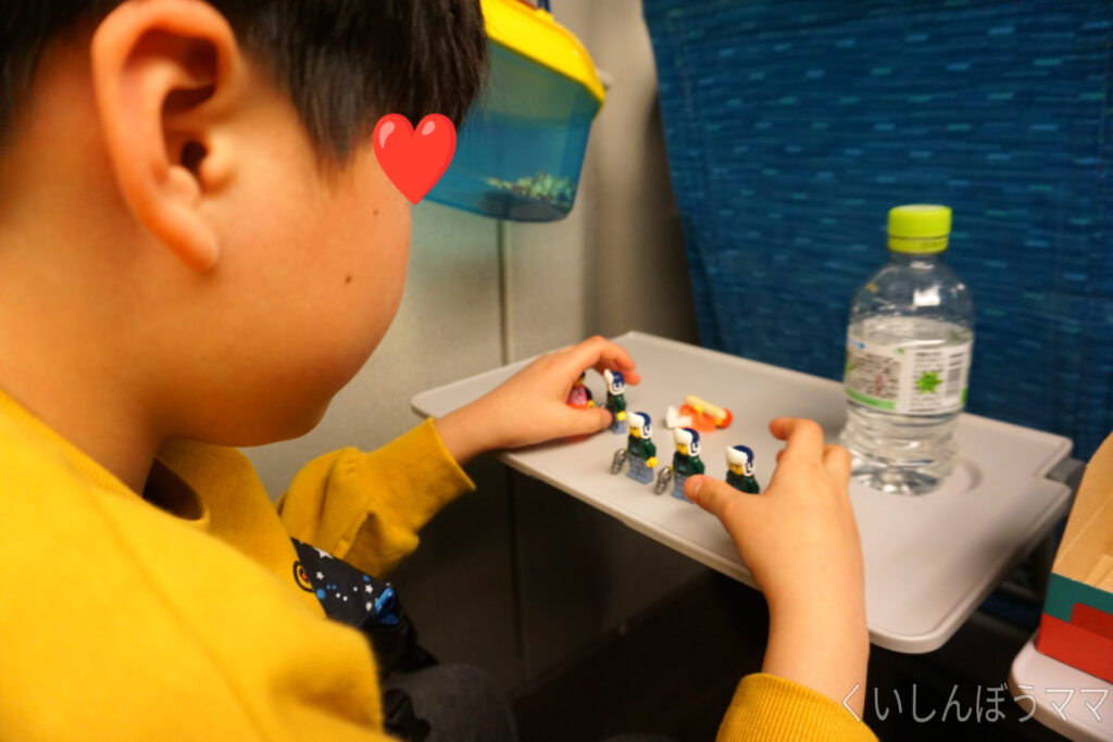 新幹線でも息子はミニフィグで遊び、レゴ三昧な旅行となりました。